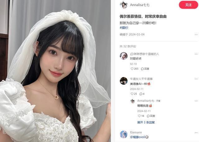 早在去年3月份,七七还分享了一套拍摄婚纱的照片。 当时她称要“为自己穿一次婚纱”,大概率是因为拍摄任务才有的这次机会。