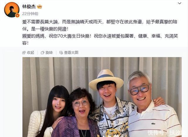 12月29日,这一天是林俊杰母亲70大寿,在这个值得纪念的日子里,林俊杰终于公开了他的女朋友。 林俊杰在博文中并没有特指女友身份,而是分享了一家四口的合照,网传女友网红七七的出现,坐实了网传恋情。