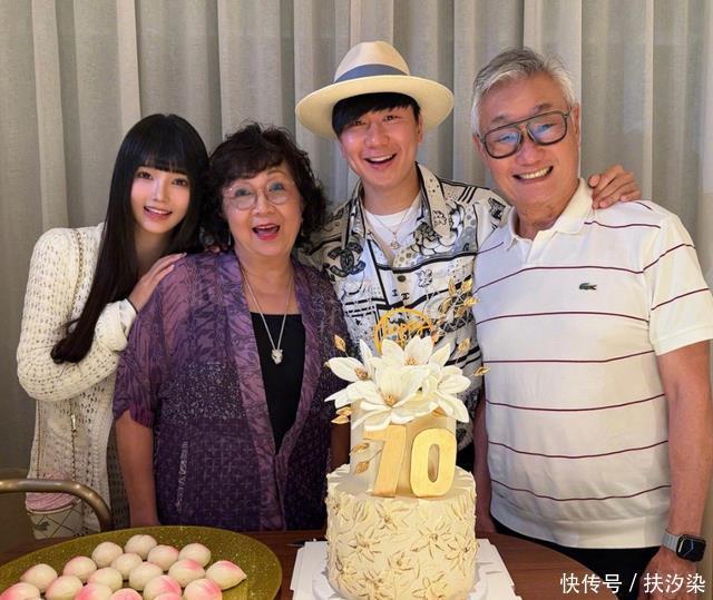 这张合照的看点满满,首先是桌子上的生日蛋糕,按照中华传统,一般过寿都会准备一个寿桃蛋糕。 但林俊杰妈妈的蛋糕并没有追求老套,而是在蛋糕一旁摆放了一碟共计22颗寿桃点心。