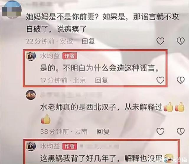 而且网上说的王君残疾了,是不对的,人家双腿好好的,水均益自己也说过残疾的说法是谣言。